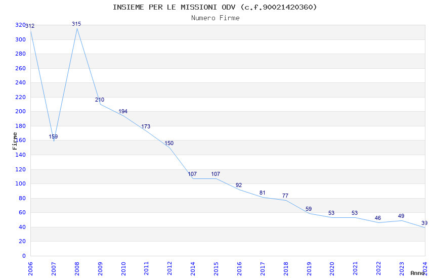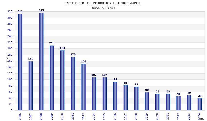 | Anno | Firme | Importi | Media | Naz. | Reg. | Prov. | Comu. |