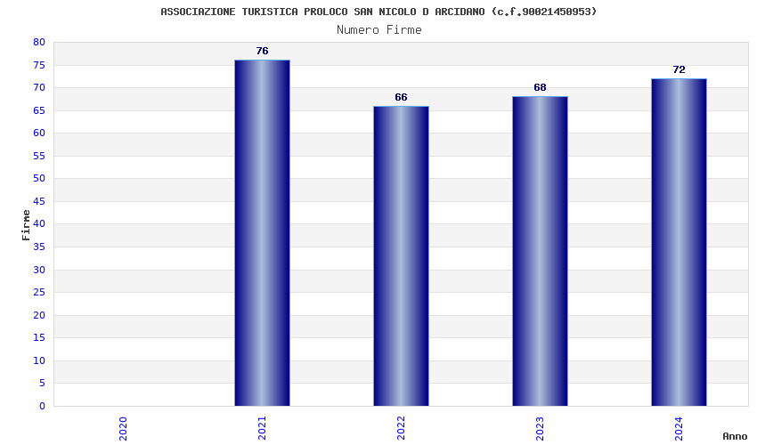 | Anno | Firme | Importi | Media | Naz. | Reg. | Prov. | Comu. |