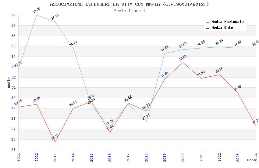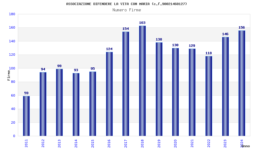 | Anno | Firme | Importi | Media | Naz. | Reg. | Prov. | Comu. |