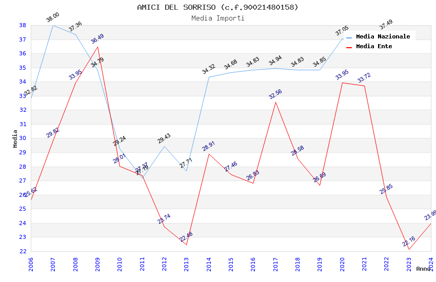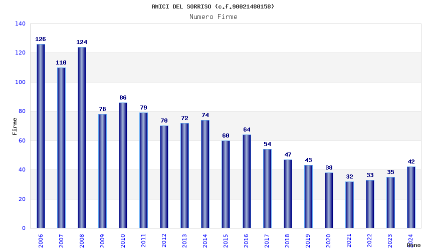 | Anno | Firme | Importi | Media | Naz. | Reg. | Prov. | Comu. |