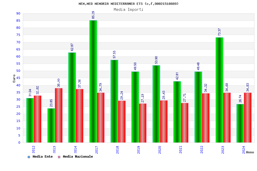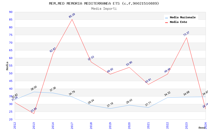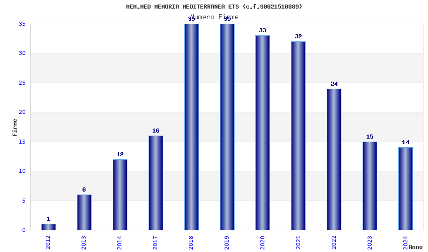 | Anno | Firme | Importi | Media | Naz. | Reg. | Prov. | Comu. |