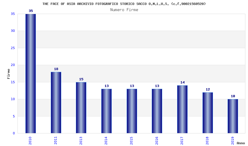 | Anno | Firme | Importi | Media | Naz. | Reg. | Prov. | Comu. |