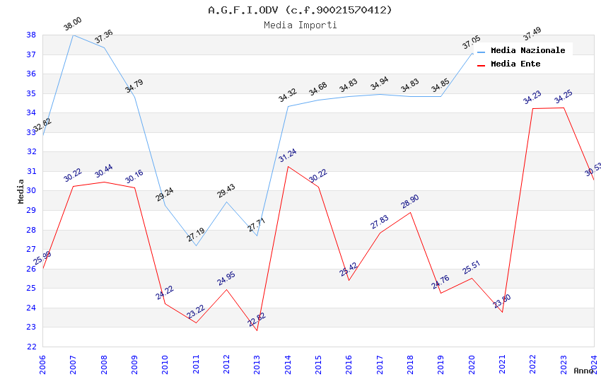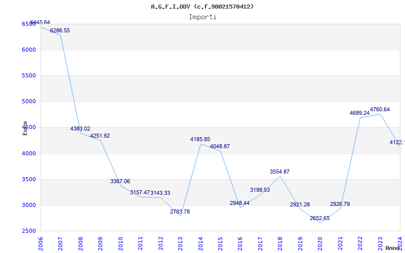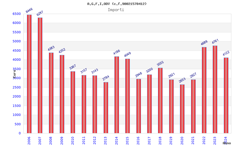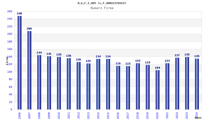 | Anno | Firme | Importi | Media | Naz. | Reg. | Prov. | Comu. |