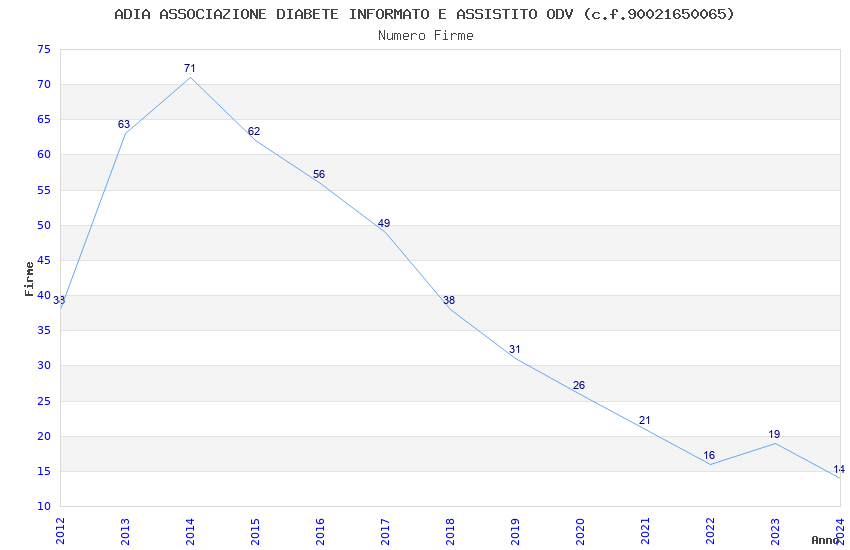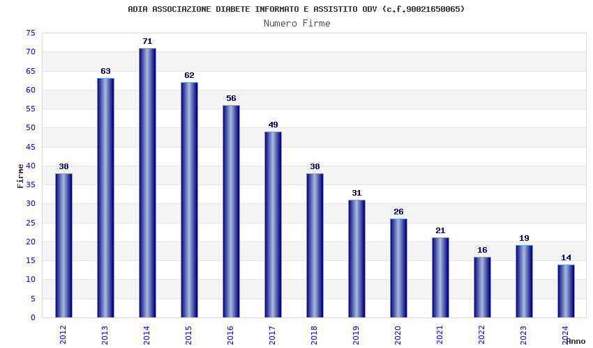 | 2014 | 71 | 1.674,77 | 23,59 | 24.169 | 1.954 | 164 | 13 |