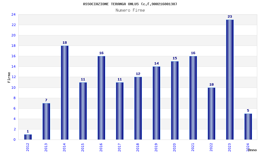 | Anno | Firme | Importi | Media | Naz. | Reg. | Prov. | Comu. |