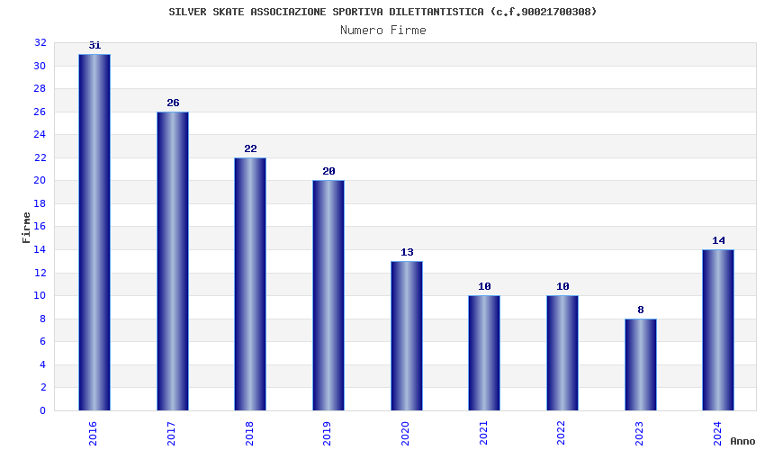 | Anno | Firme | Importi | Media | Naz. | Reg. | Prov. | Comu. |