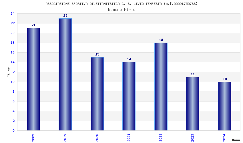 | Anno | Firme | Importi | Media | Naz. | Reg. | Prov. | Comu. |