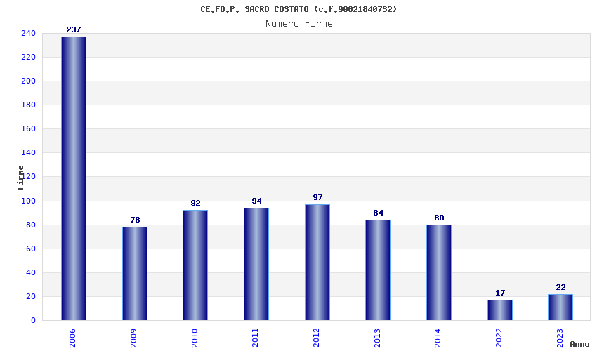 Anno Firme Importi Media Naz. Reg. Prov. Comu.