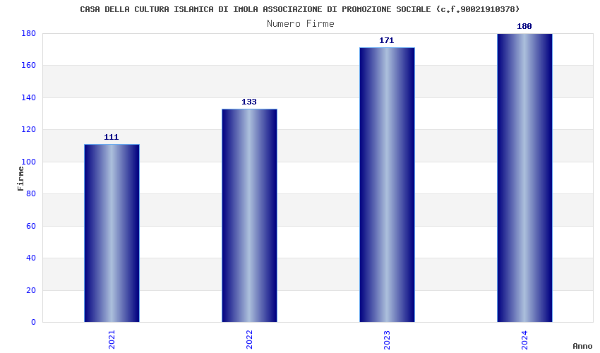 | Anno | Firme | Importi | Media | Naz. | Reg. | Prov. | Comu. |