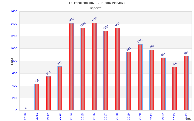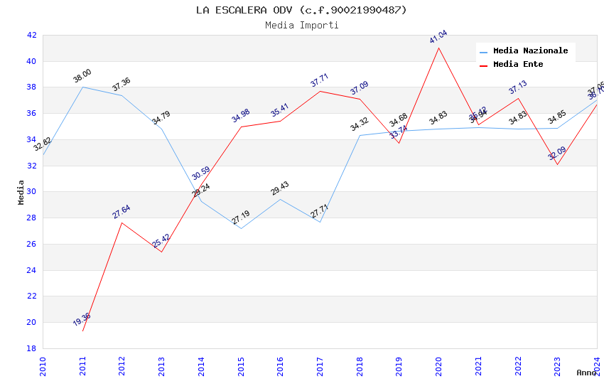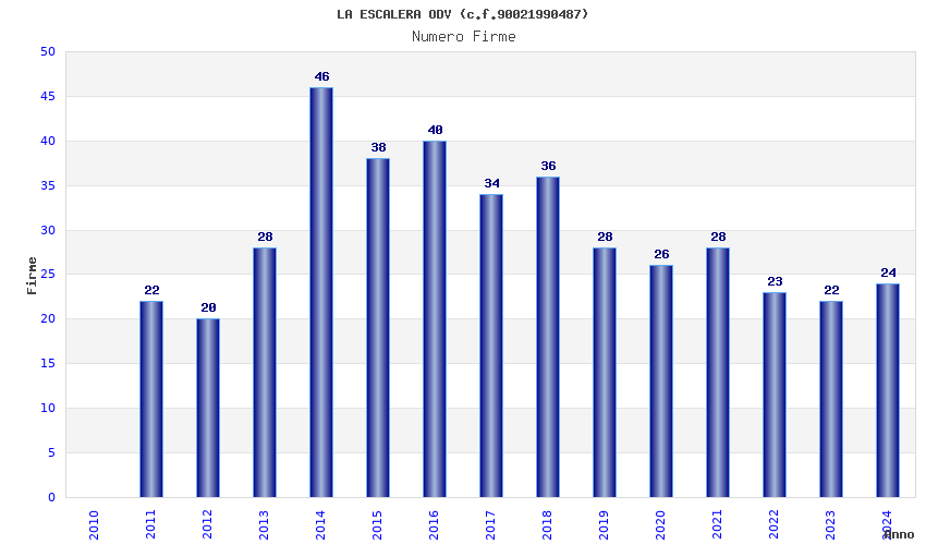 | Anno | Firme | Importi | Media | Naz. | Reg. | Prov. | Comu. |
