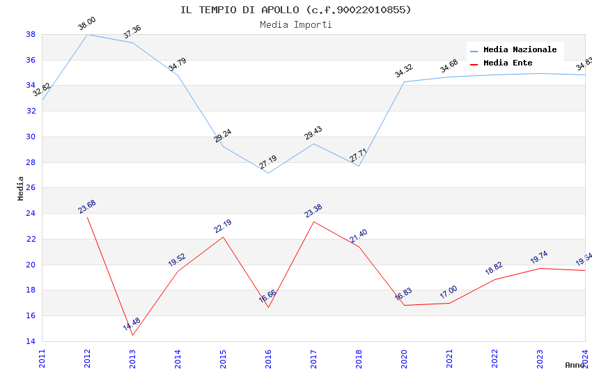 | Anno | Firme | Importi | Media | Naz. | Reg. | Prov. | Comu. |