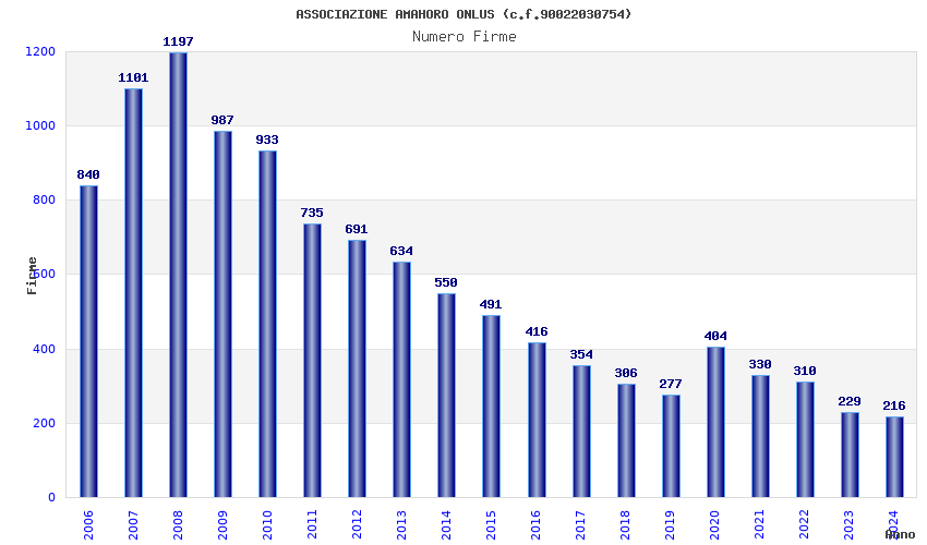 | Anno | Firme | Importi | Media | Naz. | Reg. | Prov. | Comu. |