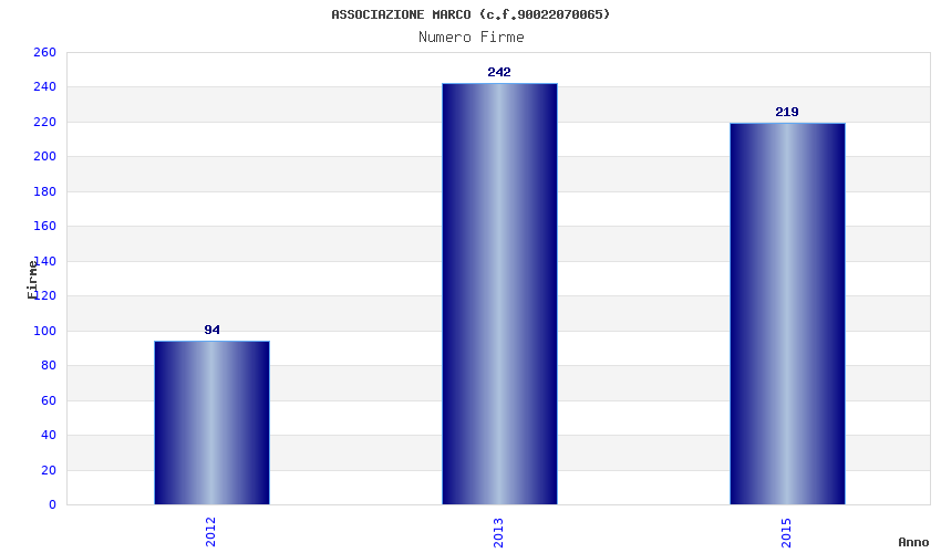 Anno Firme Importi Media Naz. Reg. Prov. Comu.