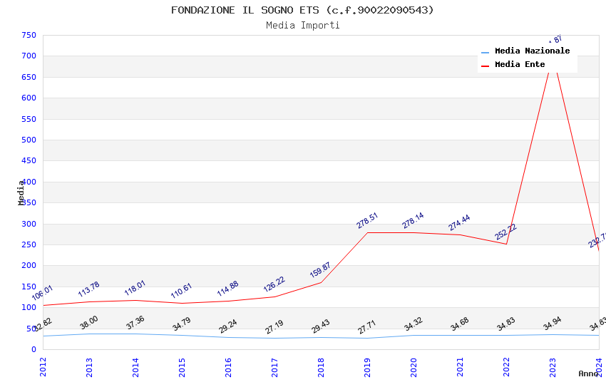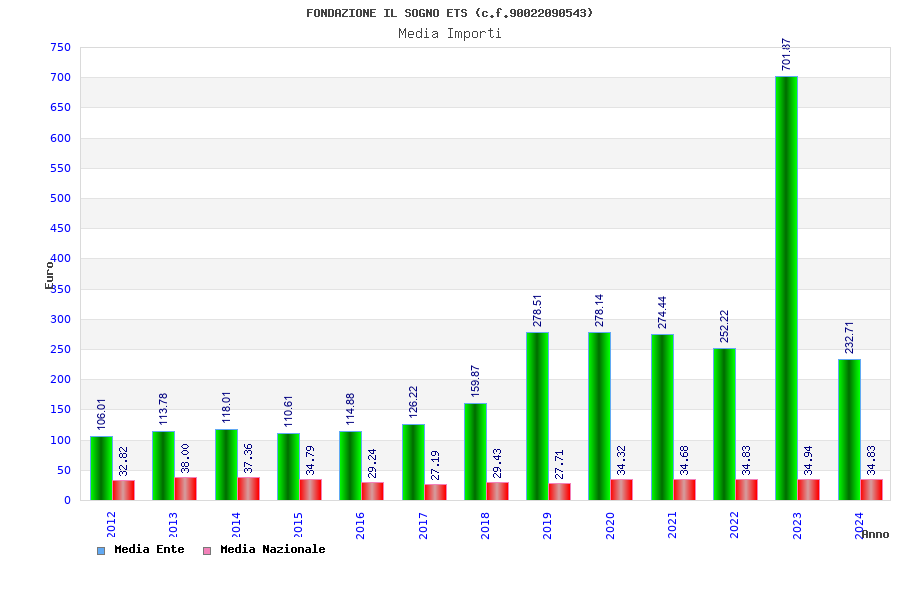 | Anno | Firme | Importi | Media | Naz. | Reg. | Prov. | Comu. |