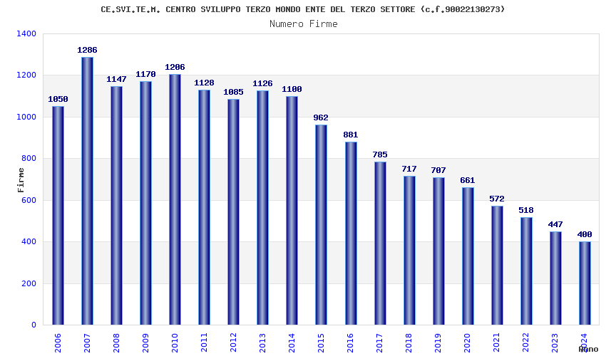 | Anno | Firme | Importi | Media | Naz. | Reg. | Prov. | Comu. |