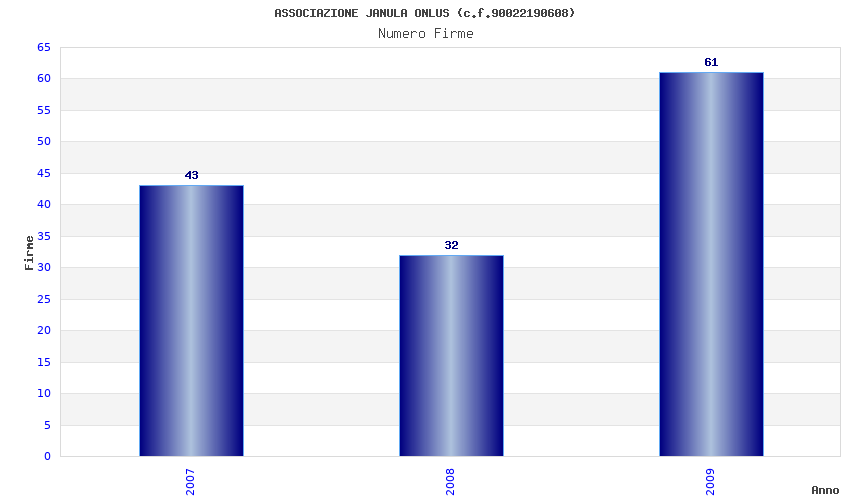 | Anno | Firme | Importi | Media | Naz. | Reg. | Prov. | Comu. |