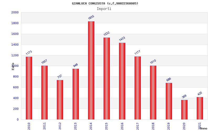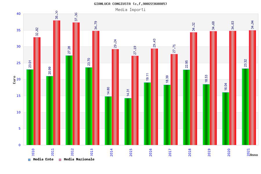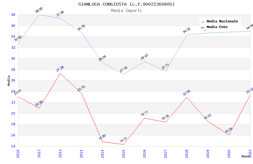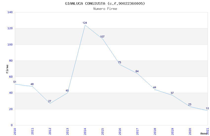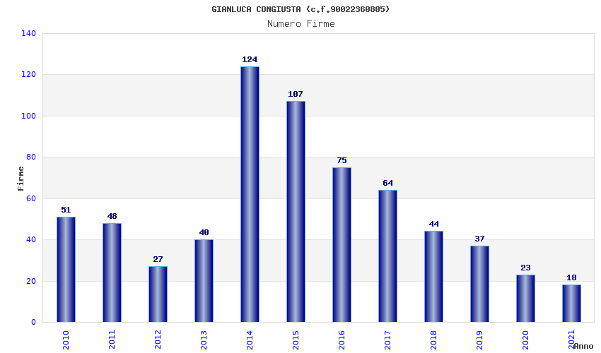 | Anno | Firme | Importi | Media | Naz. | Reg. | Prov. | Comu. |