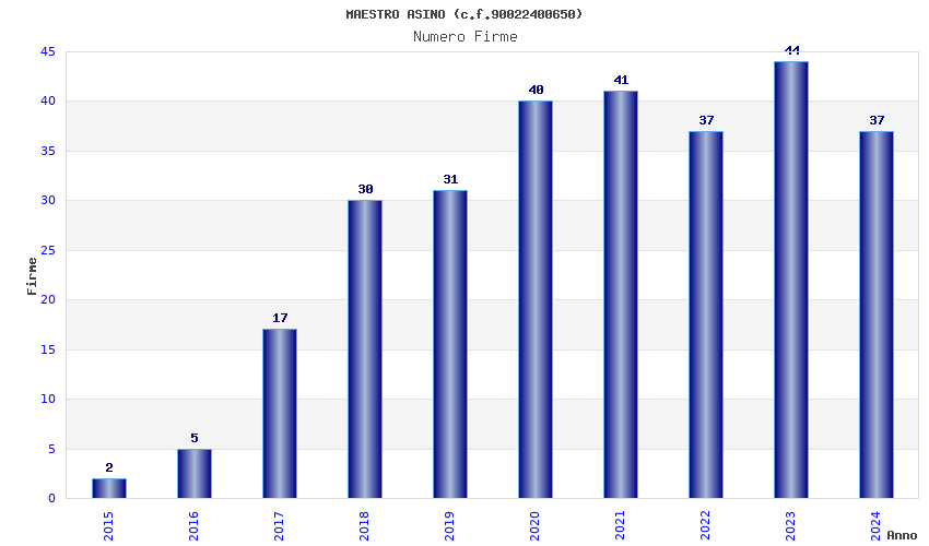 | Anno | Firme | Importi | Media | Naz. | Reg. | Prov. | Comu. |