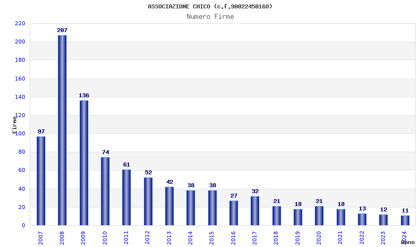 | 2008 | 207 | 5.298,34 | 25,60 | 8.024 | 1.937 | 159 | 2 |