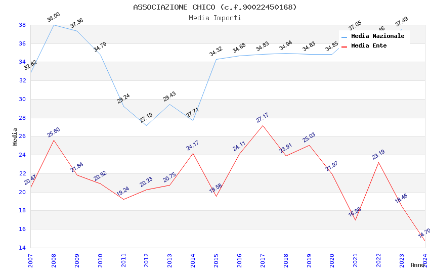 | Anno | Firme | Importi | Media | Naz. | Reg. | Prov. | Comu. |