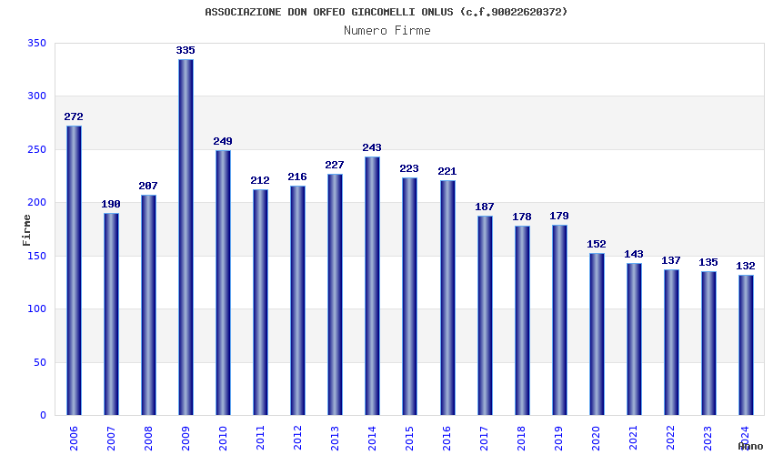| Anno | Firme | Importi | Media | Naz. | Reg. | Prov. | Comu. |
