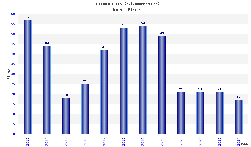 | Anno | Firme | Importi | Media | Naz. | Reg. | Prov. | Comu. |