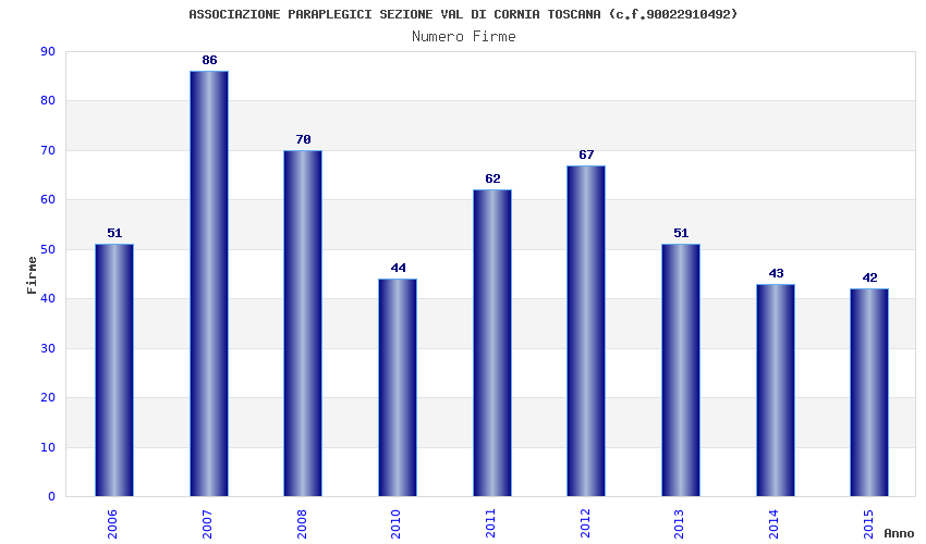 | Anno | Firme | Importi | Media | Naz. | Reg. | Prov. | Comu. |