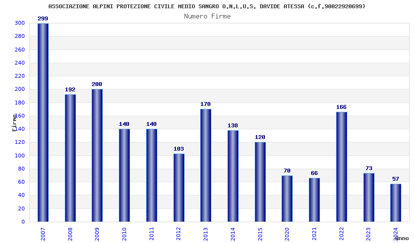 | Anno | Firme | Importi | Media | Naz. | Reg. | Prov. | Comu. |