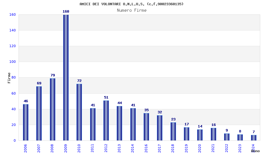| Anno | Firme | Importi | Media | Naz. | Reg. | Prov. | Comu. |