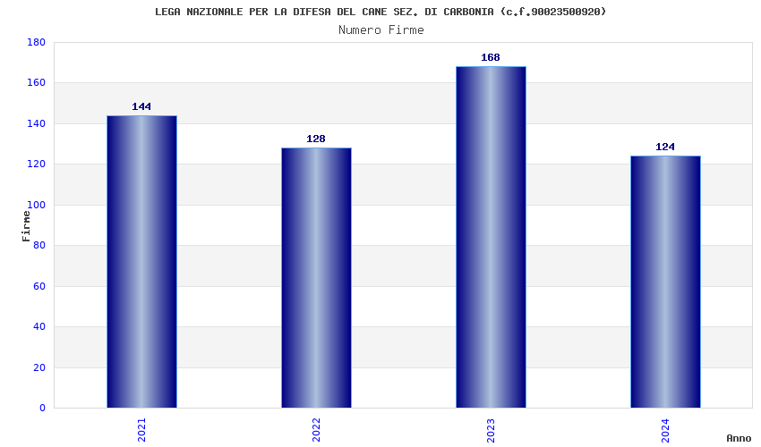 | Anno | Firme | Importi | Media | Naz. | Reg. | Prov. | Comu. |