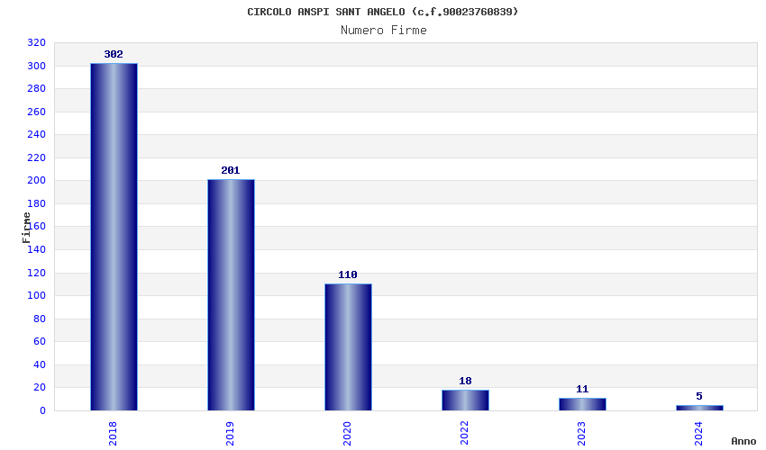 | Anno | Firme | Importi | Media | Naz. | Reg. | Prov. | Comu. |