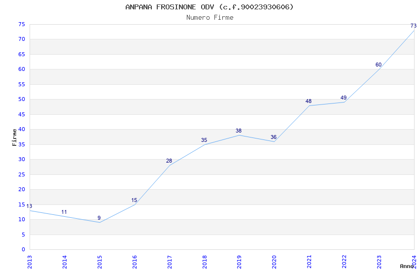 | 2024 | 73 | 2.295,57 | 31,45 | 21.645 | 2.223 | 111 | 12 |