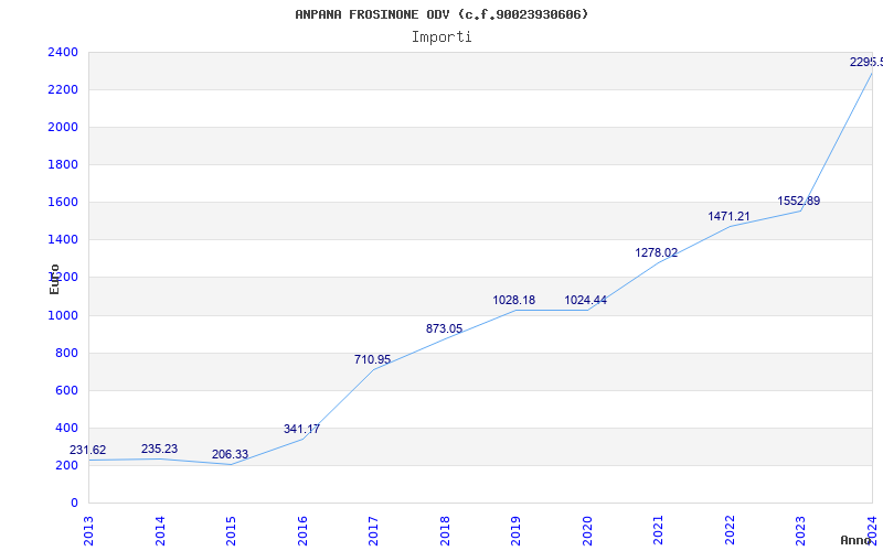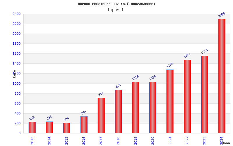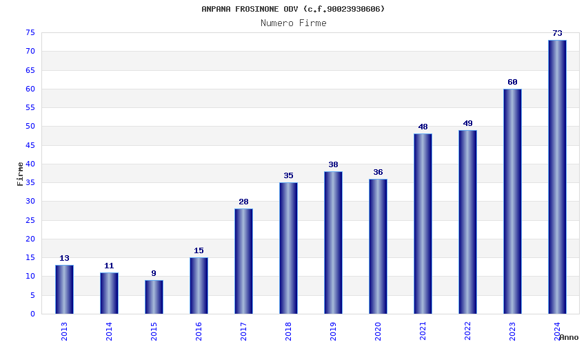 | Anno | Firme | Importi | Media | Naz. | Reg. | Prov. | Comu. |