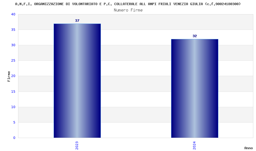 | Anno | Firme | Importi | Media | Naz. | Reg. | Prov. | Comu. |
