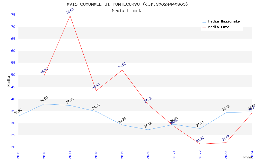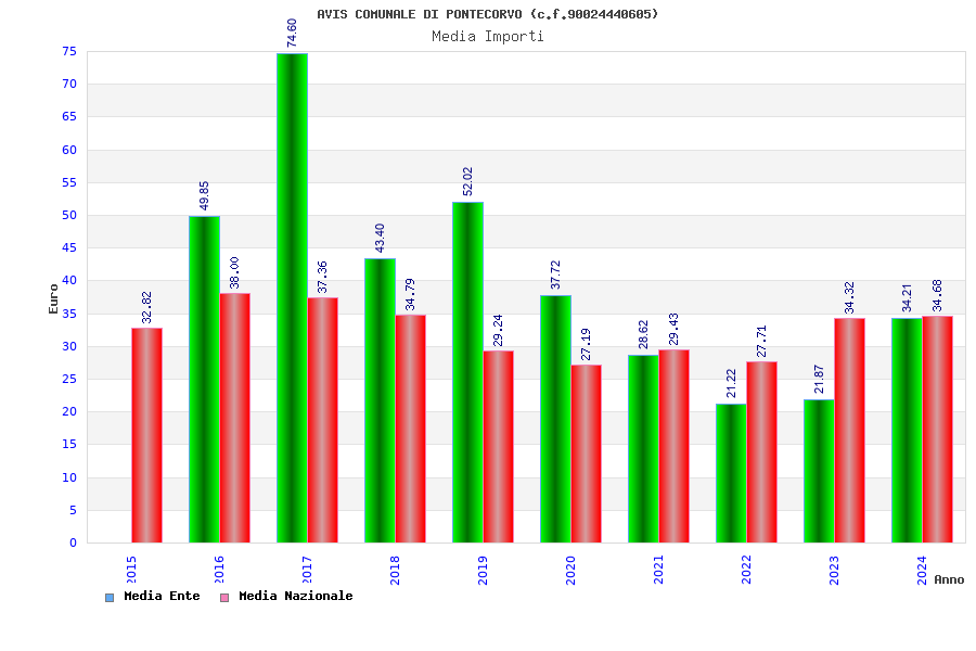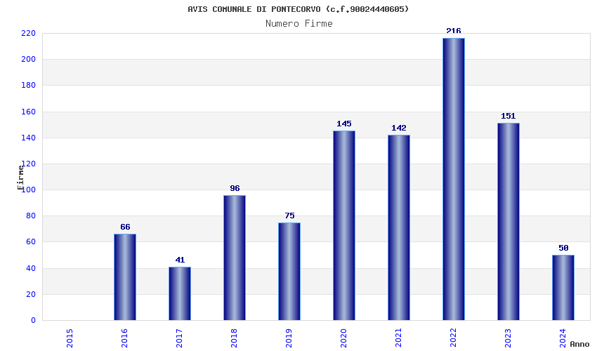 | Anno | Firme | Importi | Media | Naz. | Reg. | Prov. | Comu. |
