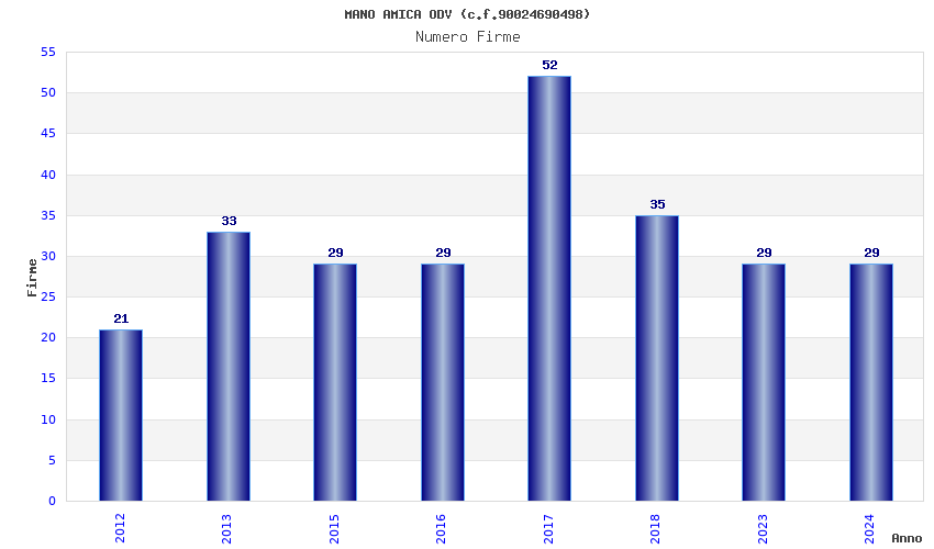 | Anno | Firme | Importi | Media | Naz. | Reg. | Prov. | Comu. |
