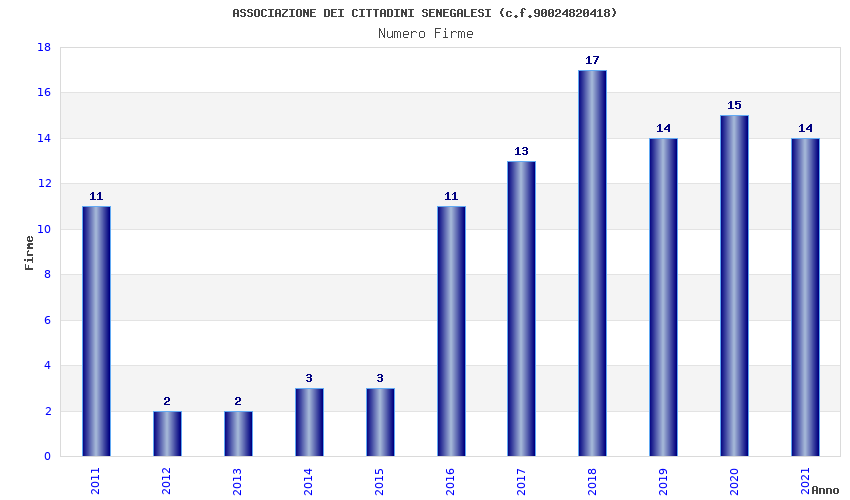 | Anno | Firme | Importi | Media | Naz. | Reg. | Prov. | Comu. |