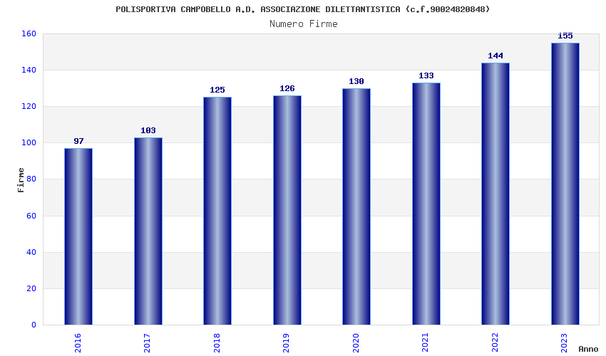 | Anno | Firme | Importi | Media | Naz. | Reg. | Prov. | Comu. |