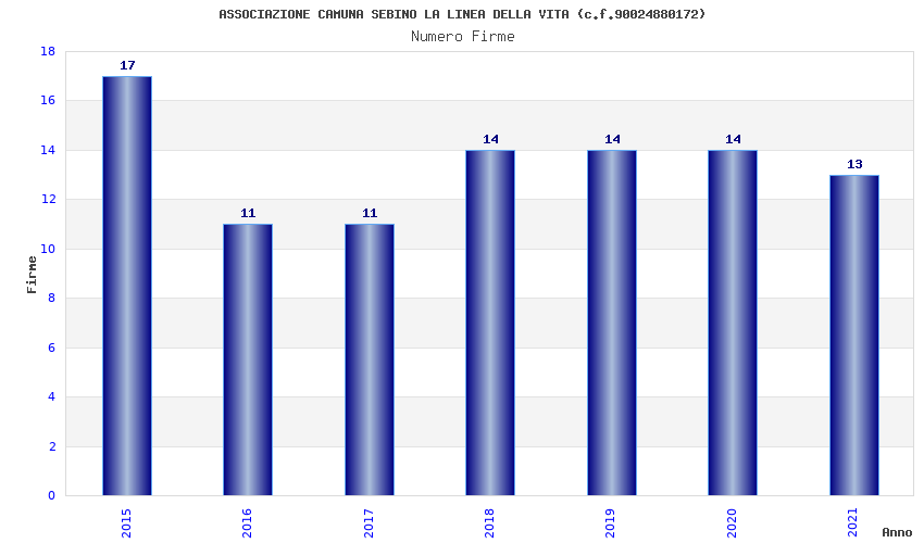 | Anno | Firme | Importi | Media | Naz. | Reg. | Prov. | Comu. |