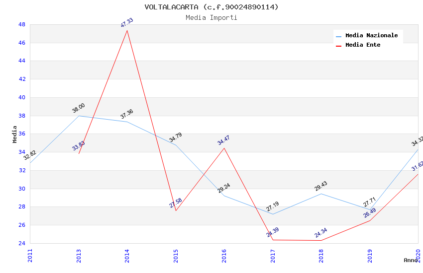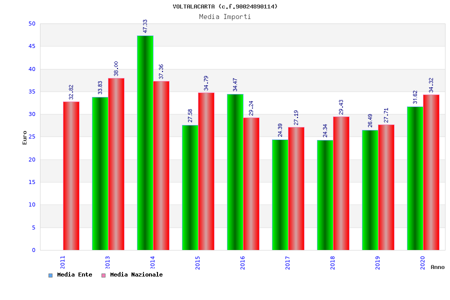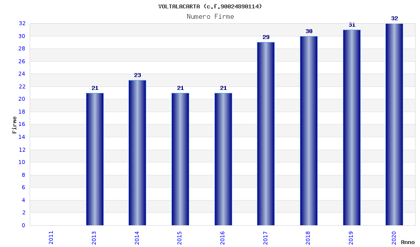 | Anno | Firme | Importi | Media | Naz. | Reg. | Prov. | Comu. |