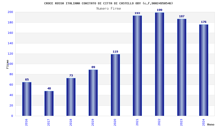 | Anno | Firme | Importi | Media | Naz. | Reg. | Prov. | Comu. |