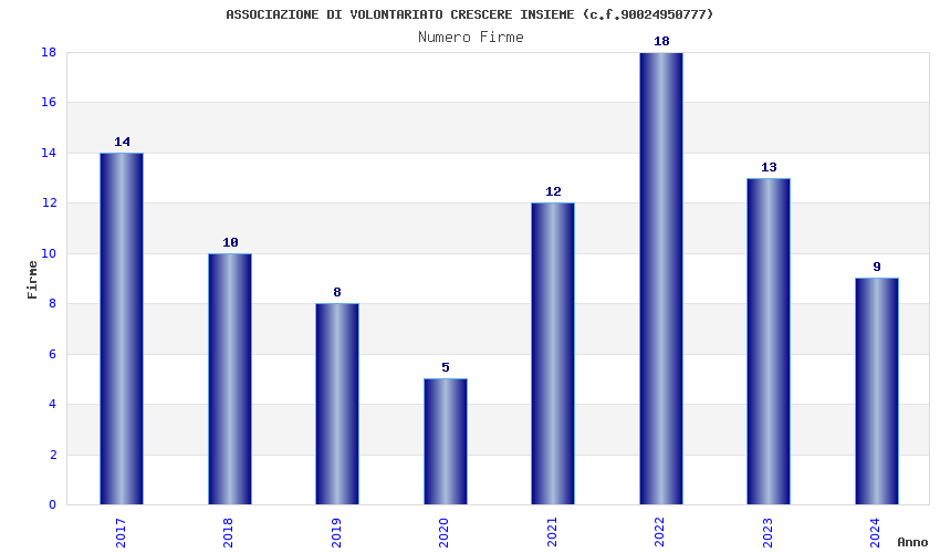 | Anno | Firme | Importi | Media | Naz. | Reg. | Prov. | Comu. |