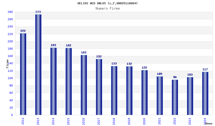 | Anno | Firme | Importi | Media | Naz. | Reg. | Prov. | Comu. |
