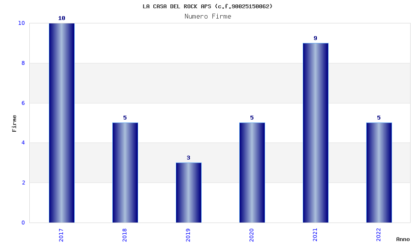 | Anno | Firme | Importi | Media | Naz. | Reg. | Prov. | Comu. |