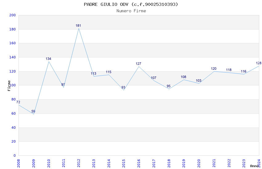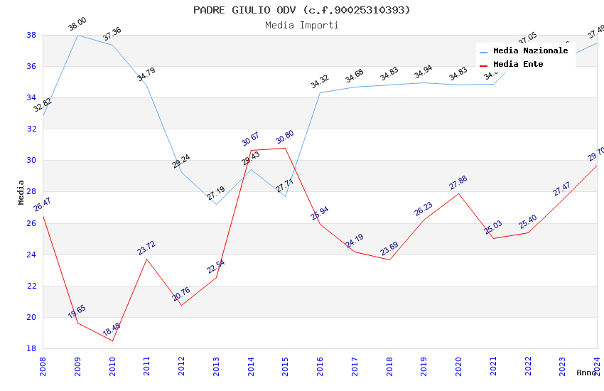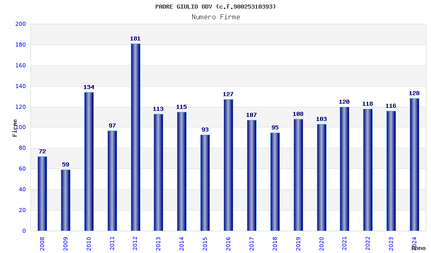 | Anno | Firme | Importi | Media | Naz. | Reg. | Prov. | Comu. |