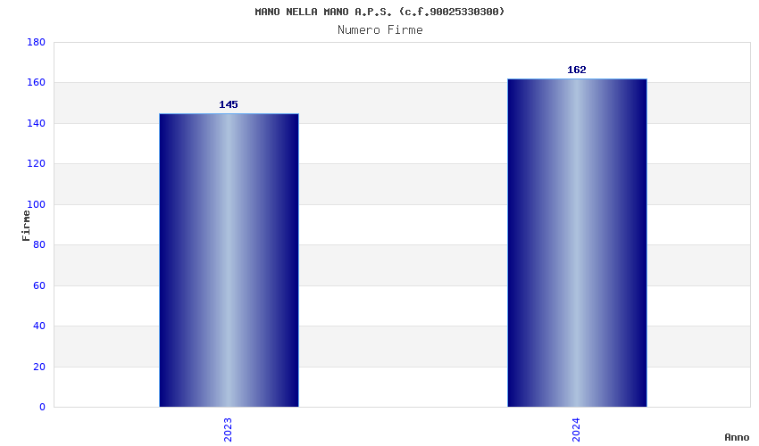 | Anno | Firme | Importi | Media | Naz. | Reg. | Prov. | Comu. |