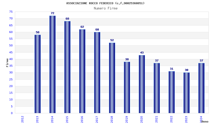 | Anno | Firme | Importi | Media | Naz. | Reg. | Prov. | Comu. |