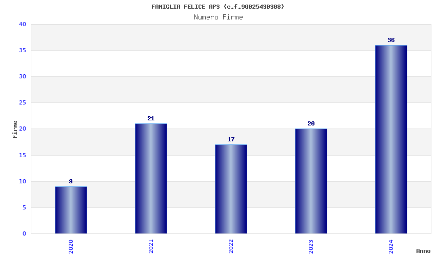 | Anno | Firme | Importi | Media | Naz. | Reg. | Prov. | Comu. |