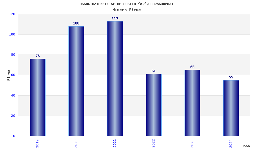 Anno Firme Importi Media Naz. Reg. Prov. Comu.