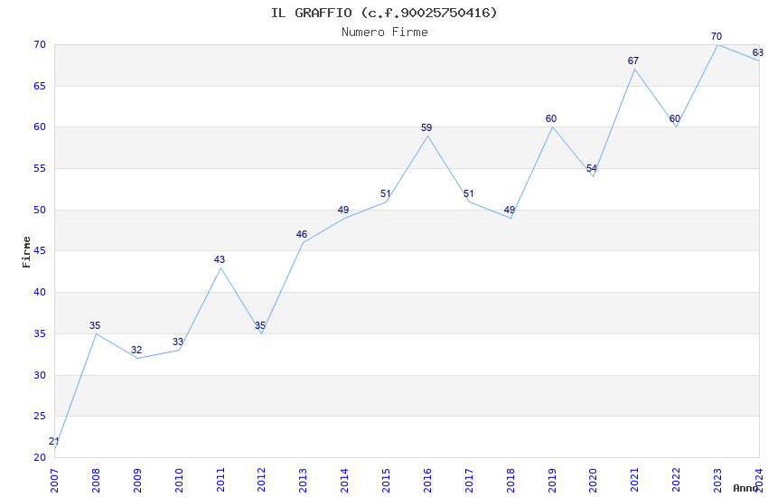 | 2021 | 67 | 1.410,00 | 21,04 | 30.046 | 745 | 175 | 46 |